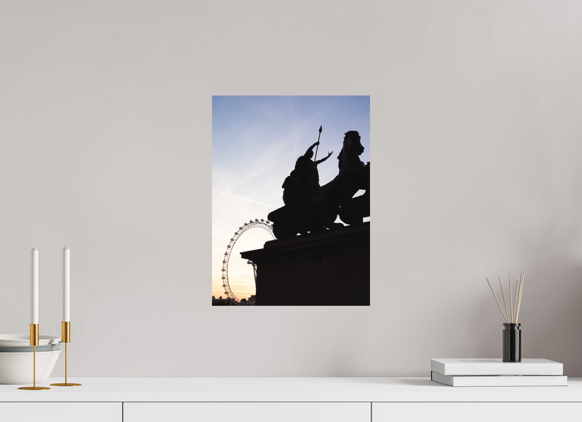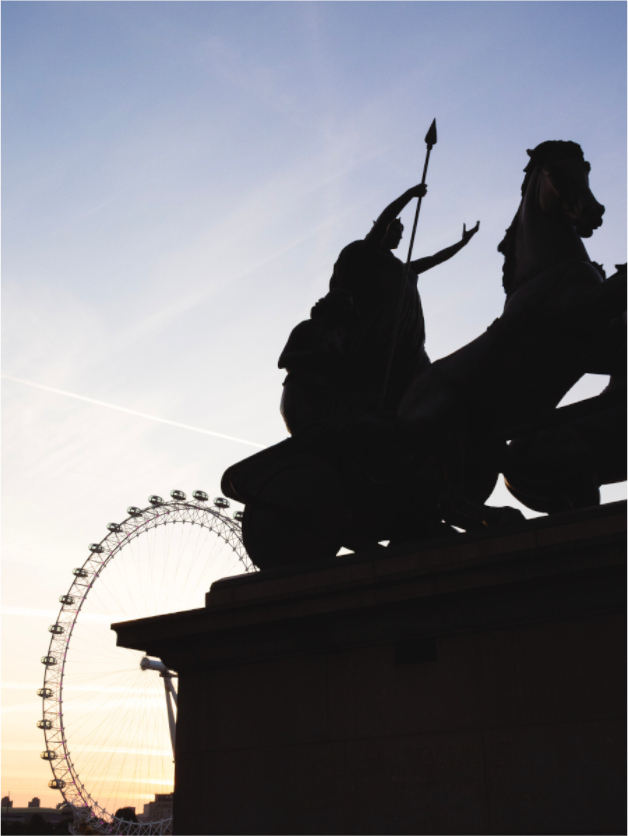 As dawn breaks over London, “Empire in Motion” captures the dynamic tension between past and present. The fierce silhouette of Queen Boudica's chariot, poised in defiant motion, meets the sleek, futuristic arc of the London Eye — symbolizing the unbroken cycle of time and transformation. Set against warm morning light and crisp urban contrast, this photograph is a striking tribute to the spirit of resilience that defines the city. Checkout Whitewall.com for info on print options.