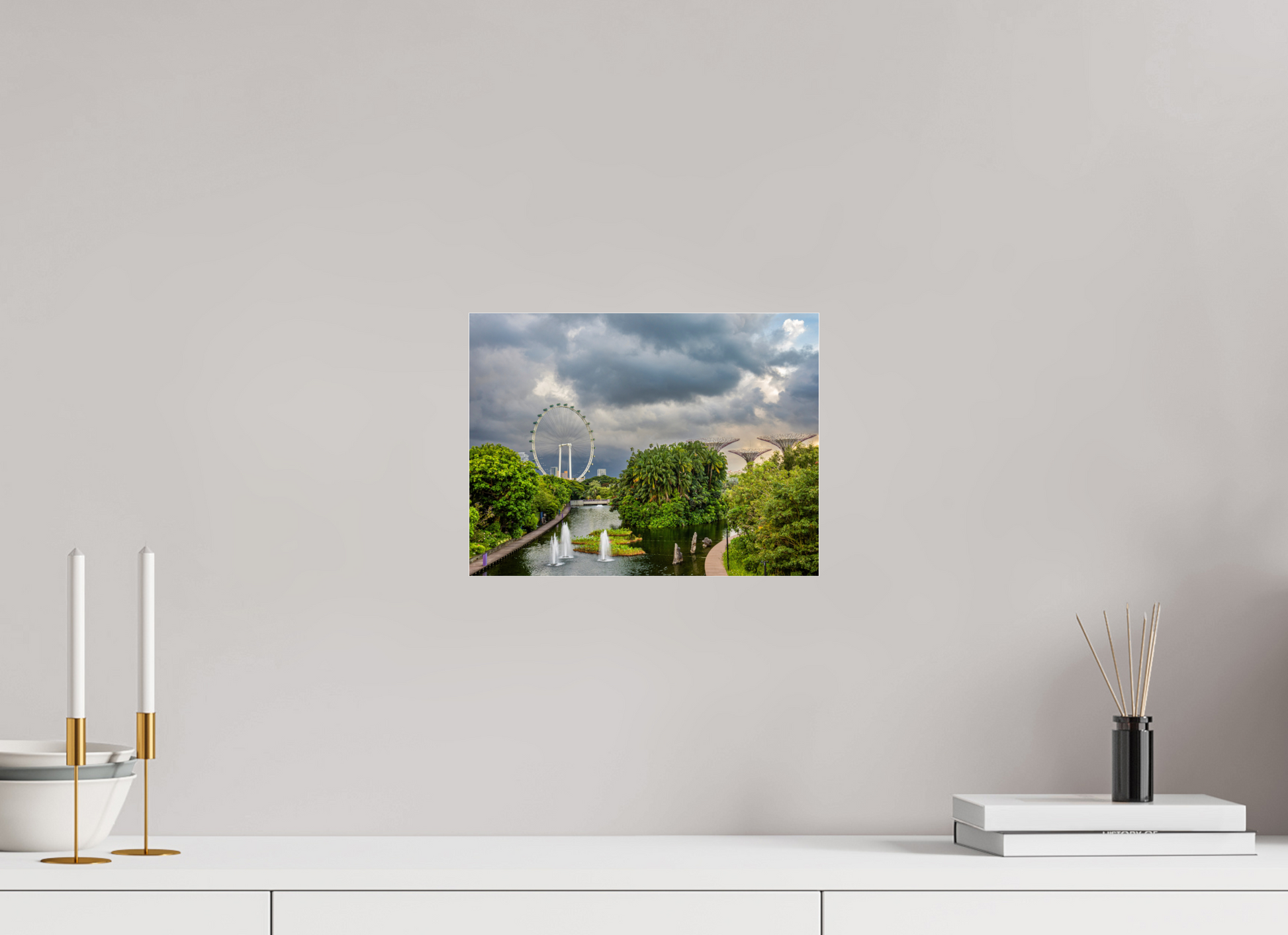 Taken after sunrise in Singapore iconic garden park. Thunderstorms are a daily occurrence here and show up quickly and disappear just as fast. This picture how you can be sunny and clear and in a storm not even a few miles away. Checkout Whitewall.com for descriptions on the print options!
